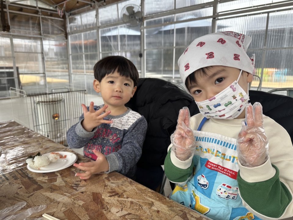 自分達で握ったおにぎりを自分でたべる。