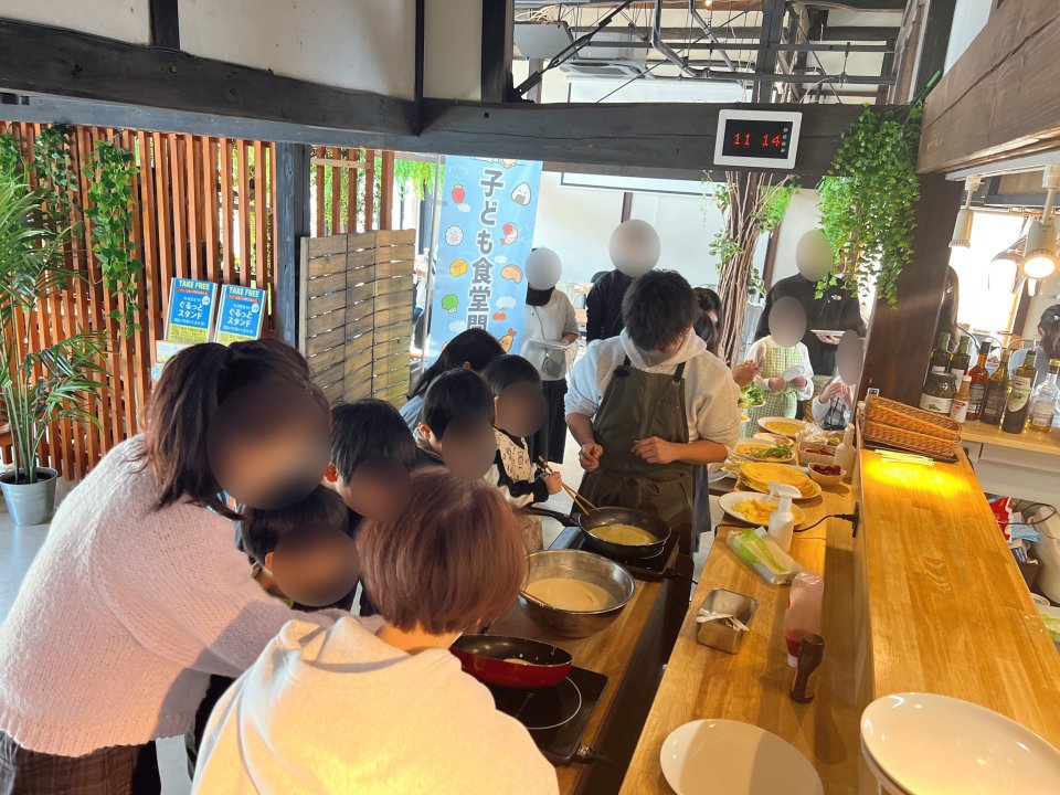 自分でフライパンを使って生地を焼く体験ブースもご用意しました。