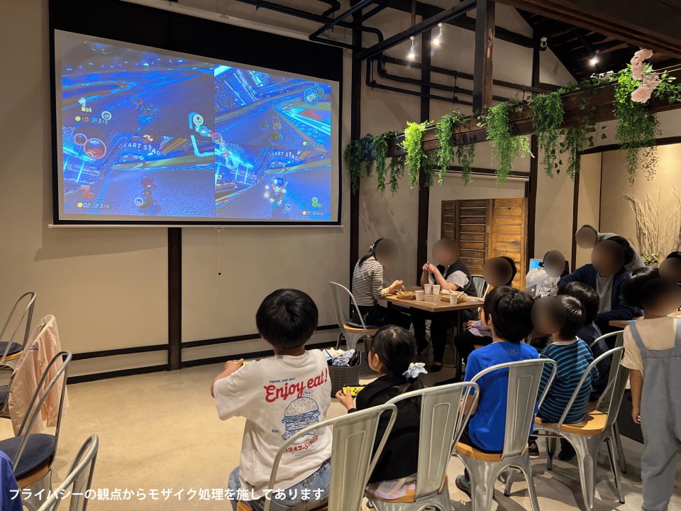 AZUMA36cafeの100インチモニターを使用し、トーナメント形式でレースゲームを体験してもらいました!