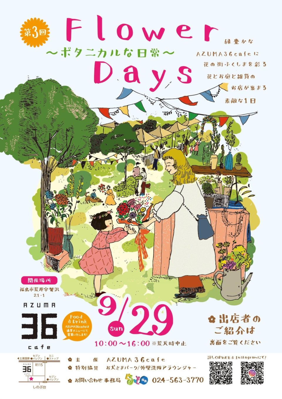 福島市荒井の「ハコニワテラス」(古民家カフェ「AZUMA36cafe」隣接)で、花とお庭と雑貨のお店が集まるイベント「第3回Flower Days~ボタニカルな日常~」を開催します。